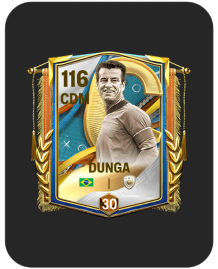 Dunga is a versatile CDM who blends defensive solidity with playmaking qualities. Unlike traditional destroyers, he offers balance, capable of tackling, intercepting, and winning duels while also dictating play with sharp passing and surprising ball control. His stamina, awareness, and rare 4 star skill moves make him reliable in both defense and build-up. While his height limits aerial ability and his close-range finishing is average, he remains one of the most complete and dependable CDMs available.